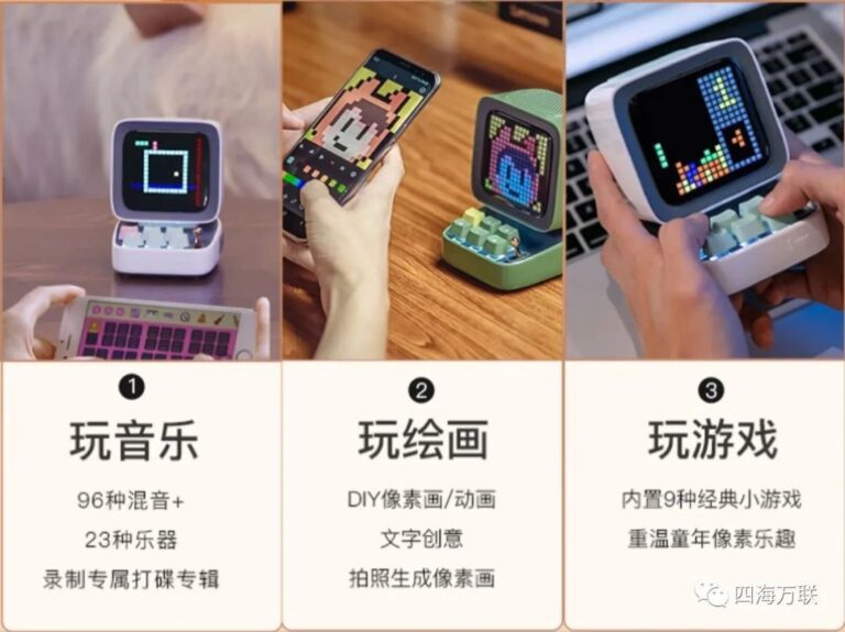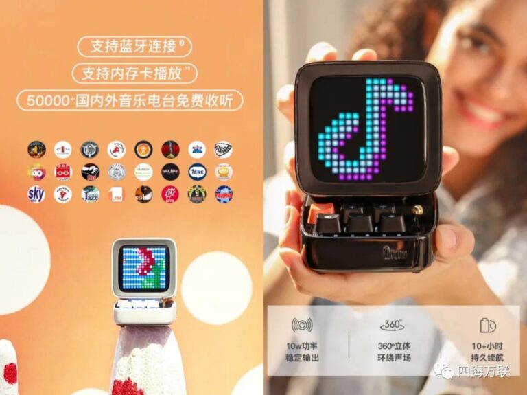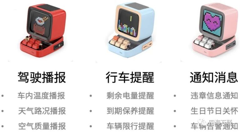 四海萬聯AIoT聯合Ditoo推出的“智車行(xing)· 智趣藍牙音箱”是一款汽車智能物聯產品,它不僅給藍牙音箱添加了一個像素屏,還與萬聯智車行AIoT平臺相連接,通過平臺軟件和汽車智能硬件的能力,將藍牙音箱和您的愛車集成,提供與行車相關的智能服務,為您帶來好聽、好看、好玩、好用的豐富體驗。